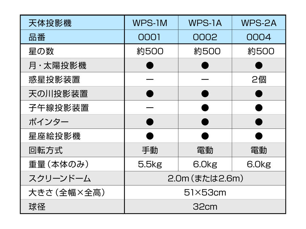 投影機本体の球が天球儀となっていますので投影された星がどの星座に属するかが大変わかりやすくなっております。 月の位相と太陽との位置関係が正確にわかります。 月・太陽投影器がコンパクトにまとまり、操作が簡単です。 電動式は、回転むらがなく(約3分で1回転)、音がほとんど聞こえません。