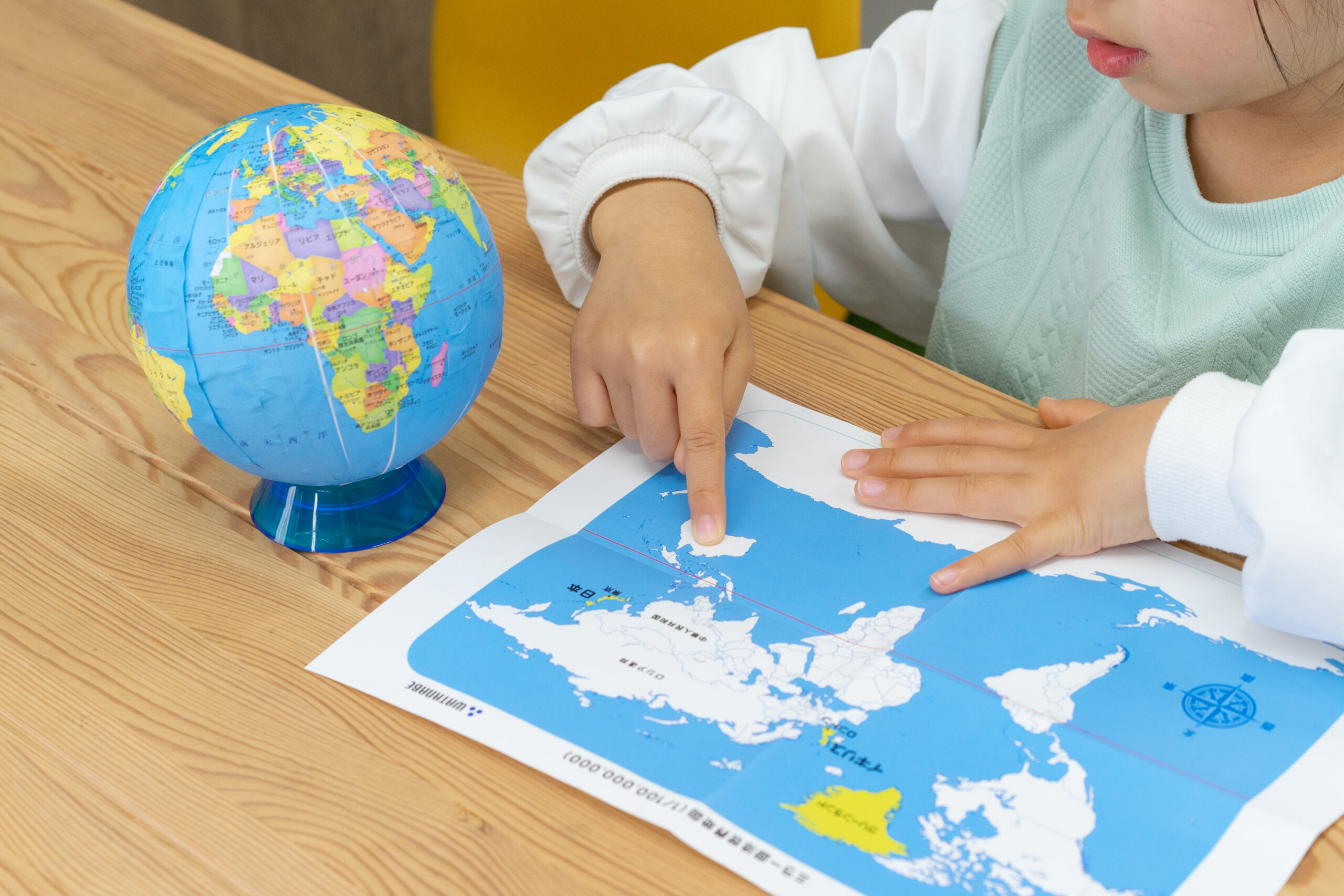 チャレンジシートを使って、地球儀とふろくの地図をくらべて